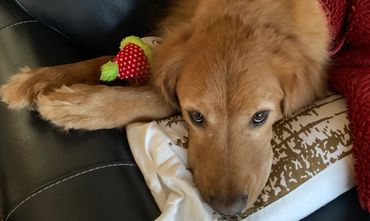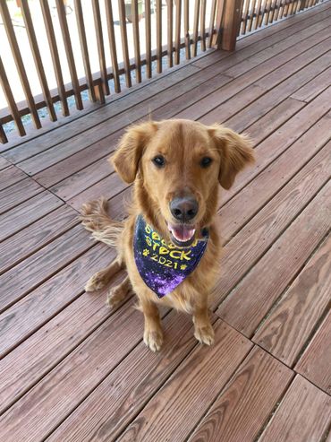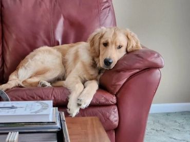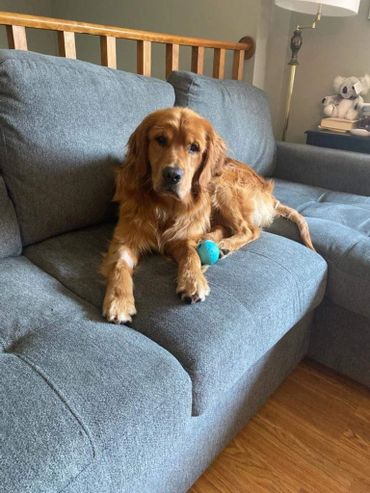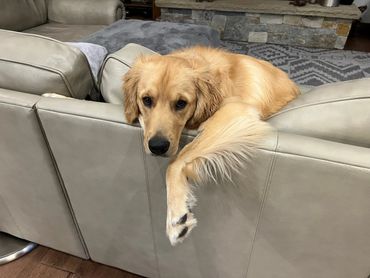 In February of 2023 Nancy received a call of a couple that couldn't spend the amount of time needed with their young Golden Retriever pup. We found what we thought was a perfect home, twelve hours later he was returned to our home. As everyone knows a Golden pup is a full time job, and a lifelong commitment. How could we resist such a handsome fellow! Although he was a rambunctious fellow, thanks to some great training from All Day Dog Adventures, and lots of patience. He is now a precious member of our family ! Welcome Home Good Boy!